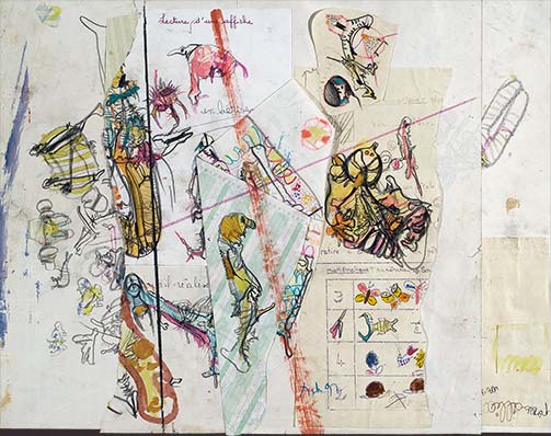 En collaboration avec Prescillia, 1992, technique mixte et collages sur papier. Photo : Domingo Djuric.